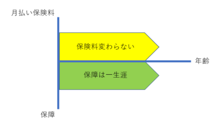 保障は一生涯続きますが、保険料も契約している限り、払い続けることになります。有期払いと違って保険料が確定していないため、長生きすればするほど総支払保険料は高くなります。